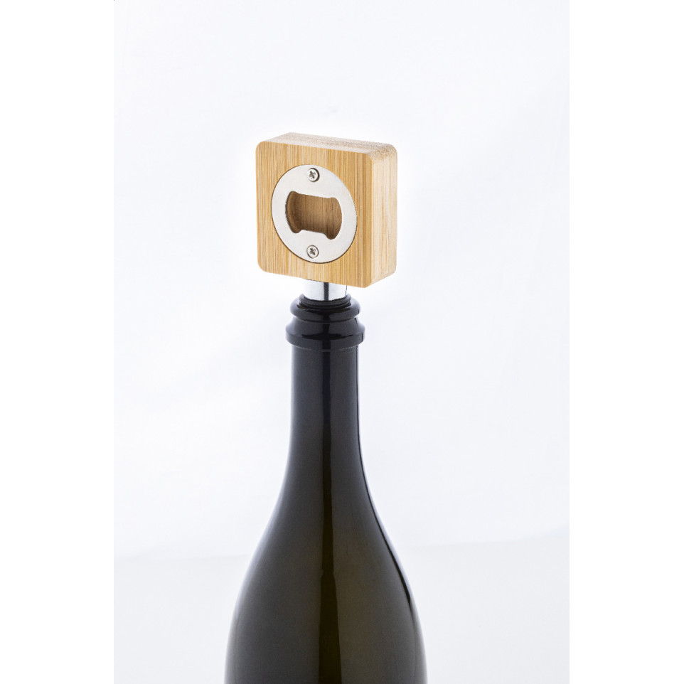 Deze wijnstopper met geïntegreerde bamboe flesopener kan gepersonaliseerd worden met uw logo of boodschap, waardoor hij een krachtig marketingmiddel wordt. Versterk uw merkidentiteit en laat een langdurige indruk achter bij relaties. Perfect geschikt als relatiegeschenk bij beurzen, productlanceringen, evenementen, klant onboarding, of voor interne branding tijdens bedrijfsevenementen. Het functionele ontwerp zorgt dat het dagelijks ingezet wordt, waardoor uw merk frequent zichtbaar is, zowel privé als zakelijk.