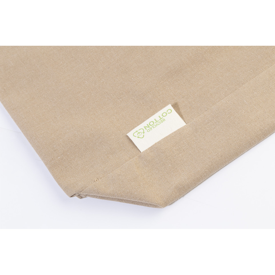Een duurzame boodschappentas vervaardigd uit gerecycled katoen en RPET polyester, voorzien van lange handvatten en een kruisbodem. Geschikt voor dagelijks gebruik en bewuste consumenten.