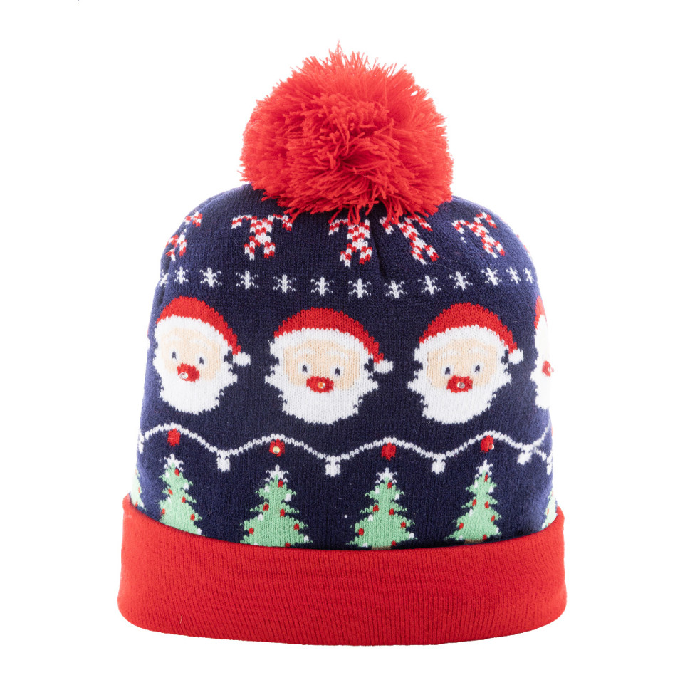 De Norrsken meerkleurige kerst LED-wintermuts is een gebreide, acryl beanie met manchet, pompon en zes geïntegreerde LED-lampjes met drie verschillende lichtmodi. Ideaal voor feestelijke winterse gelegenheden en buitenevenementen.