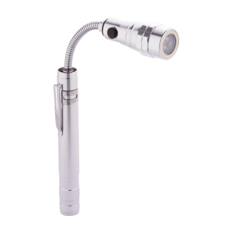 Kan de zaklamp in alle richtingen worden gebogen? Ja, dankzij de flexibele kop kunt u de lichtstraal precies richten waar u deze nodig heeft, terwijl het uitschuifbare ontwerp moeilijk bereikbare plekken toegankelijk maakt.
