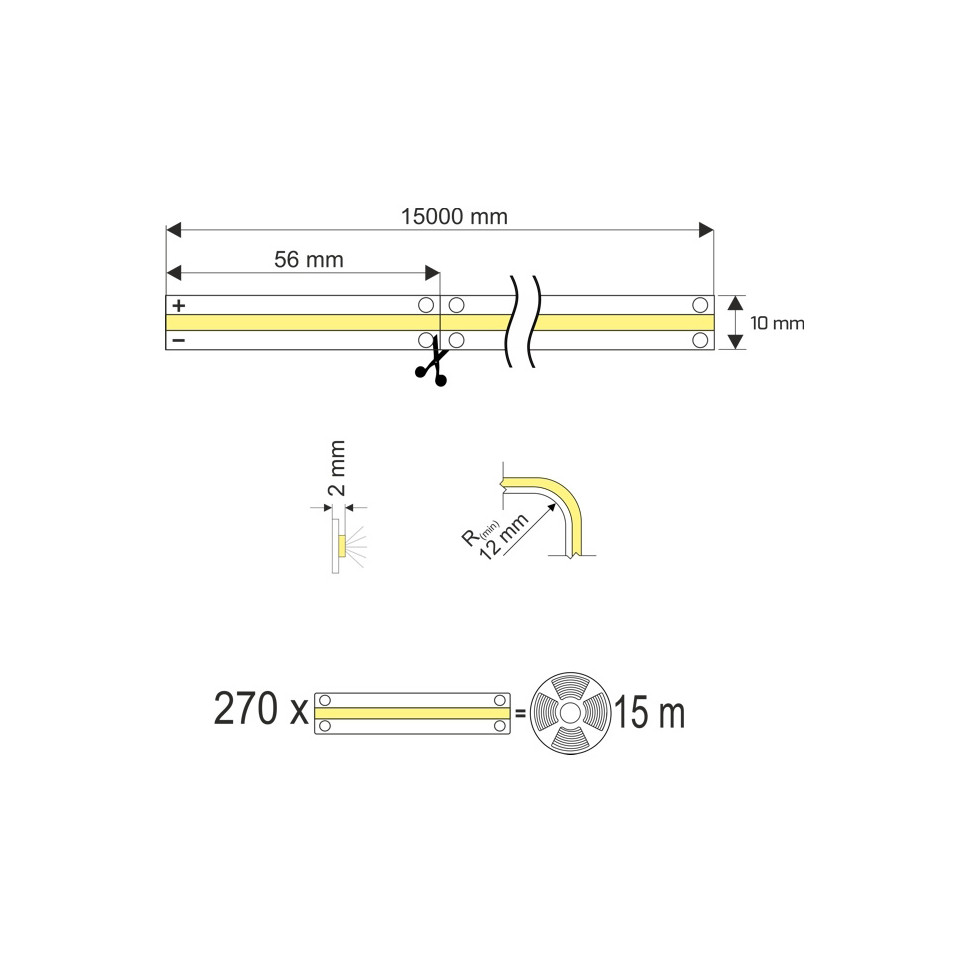 Deze COB LED-strip van 15 meter is ideaal voor het creëren van een egale, naadloze verlichting in binnenruimtes zoals woonkamers, kantoren of winkels. Dankzij zijn flexibele ontwerp is hij uitstekend geschikt voor accentverlichting, meubel- of koofverlichting.